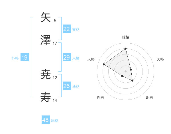 矢澤 尭寿さんの天格は22画の1点!