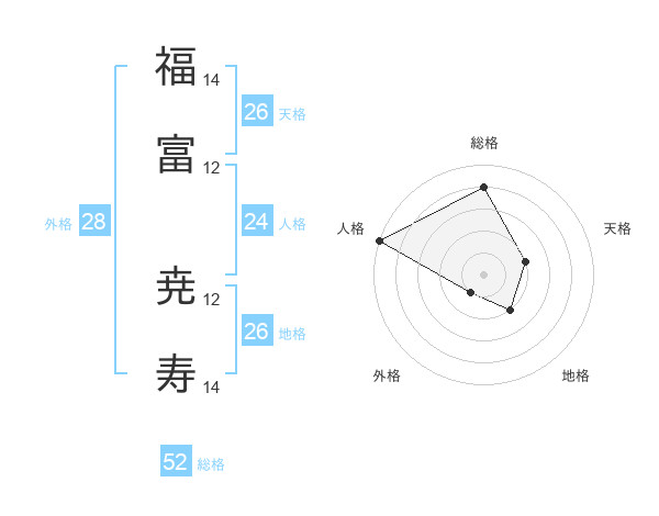 福富 尭寿さんの総格は52画の4点!