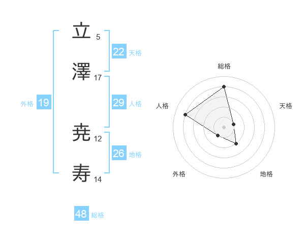 立澤 尭寿さんを姓名の画数から五運を鑑定