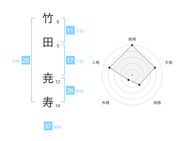 竹田 尭寿さんを姓名の画数から五運を鑑定