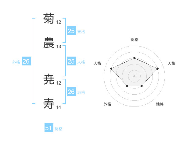 菊農 尭寿さんの総格は51画の3点!