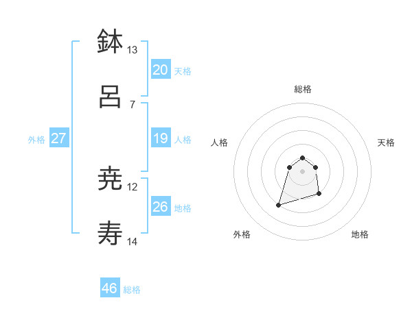 鉢呂 尭寿さんを姓名の画数から五運を鑑定