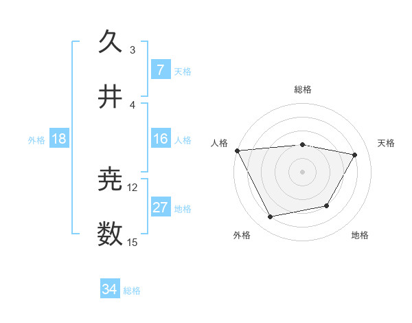 久井 尭数さんの総格は34画の2点!