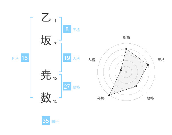 乙坂 尭数さんの総格は35画の4点!