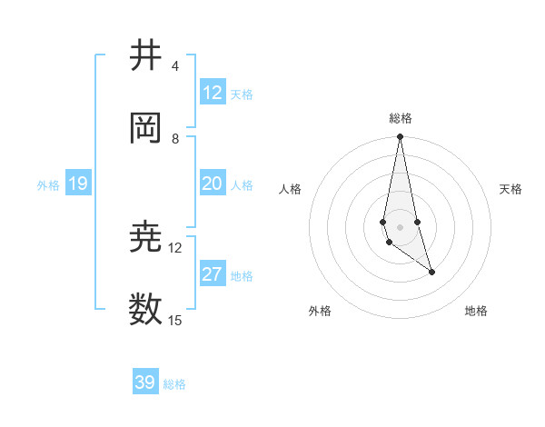 井岡 尭数さんの総格は39画の5点!
