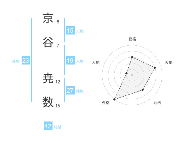 京谷 尭数さんを姓名の画数から五運を鑑定