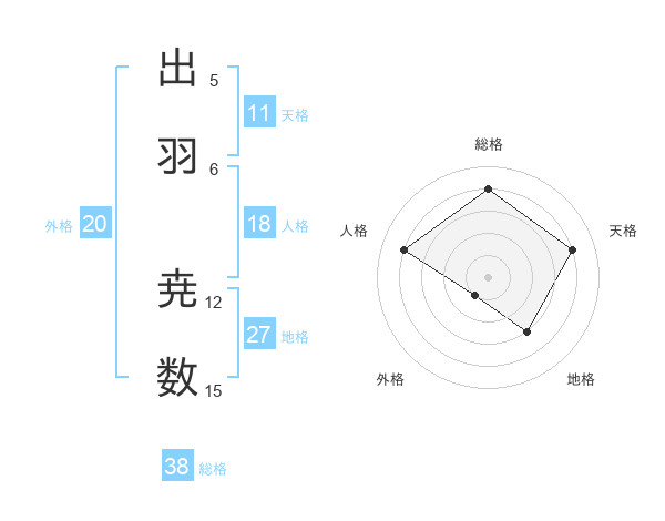 出羽 尭数さんを姓名の画数から五運を鑑定