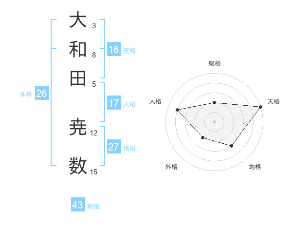 大和田 尭数さんを姓名の画数から五運を鑑定