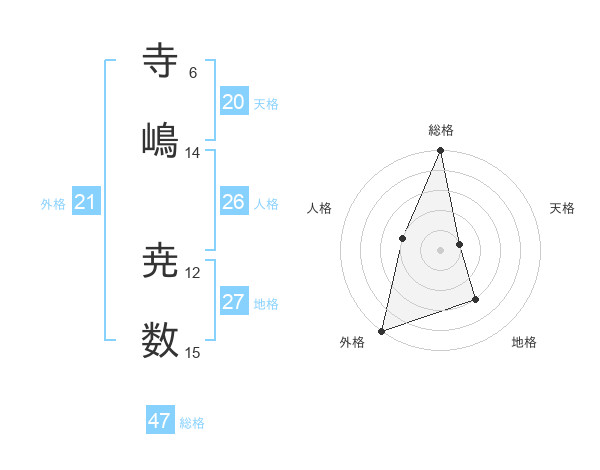 寺嶋 尭数さんを姓名の画数から五運を鑑定