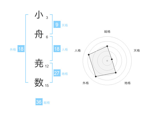 小舟 尭数さんの総格は36画の3点!