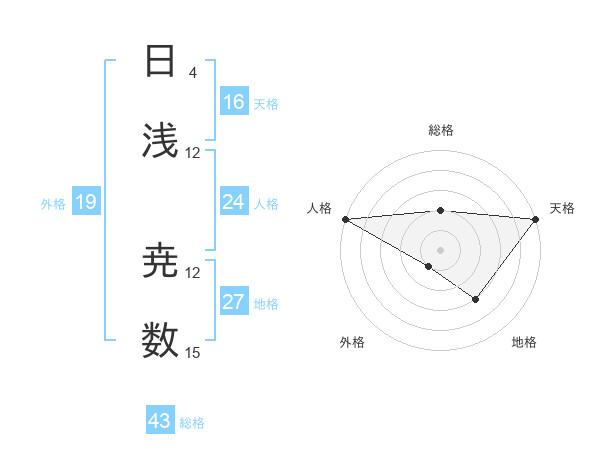 日浅 尭数さんを姓名の画数から五運を鑑定
