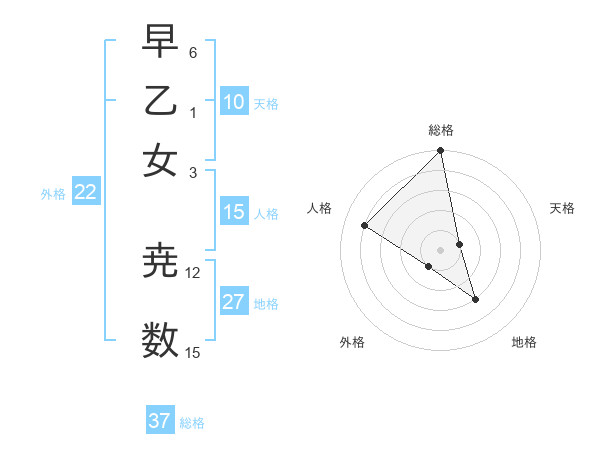 早乙女 尭数さんの総格は37画の5点!