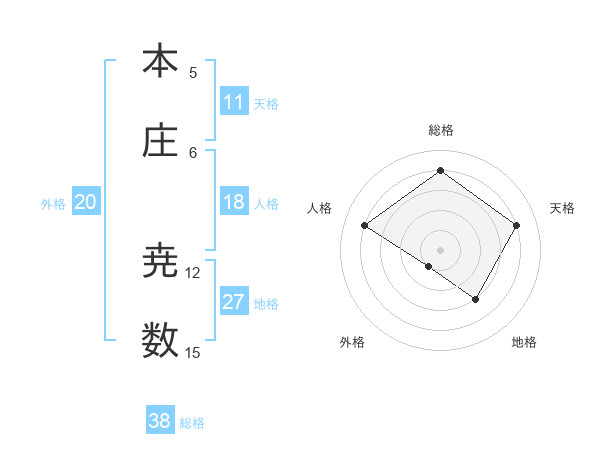 本庄 尭数さんを姓名の画数から五運を鑑定