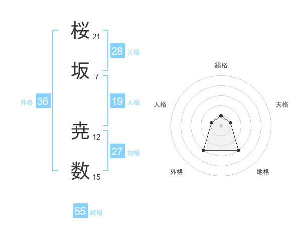 桜坂 尭数さんを姓名の画数から五運を鑑定