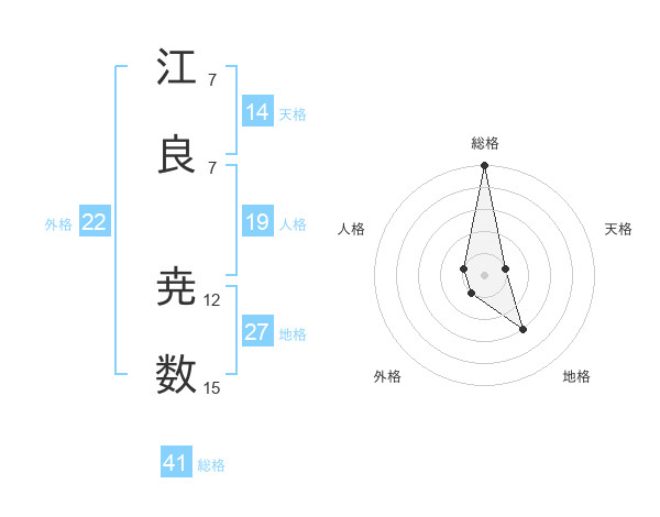 江良 尭数さんの外格は22画の1点!