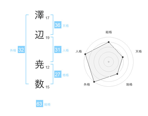 澤辺 尭数さんを姓名の画数から五運を鑑定