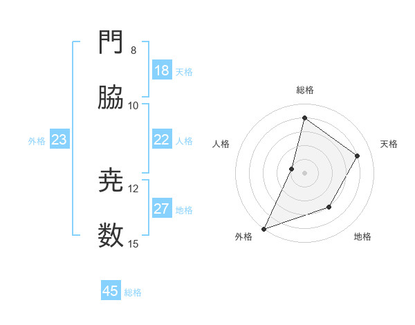 門脇 尭数さんの総格は45画の4点!