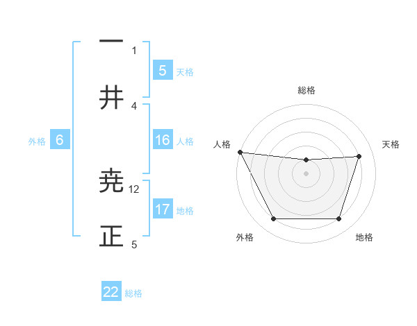 一井 尭正さんの総格は22画の1点!