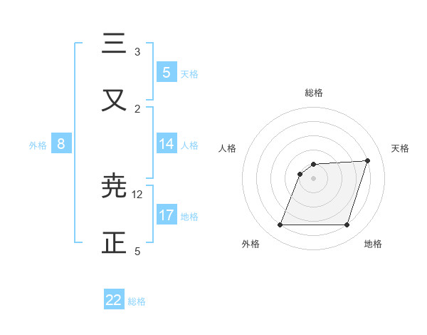 三又 尭正さんの天格は5画の4点!