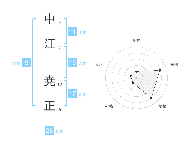 中江 尭正さんの総格は28画の1点!