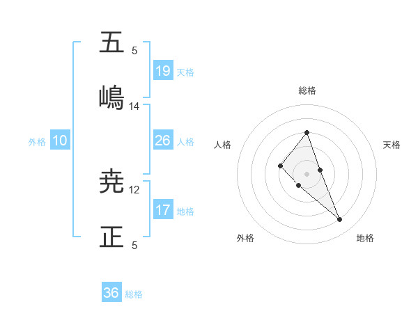 五嶋 尭正さんを姓名の画数から五運を鑑定