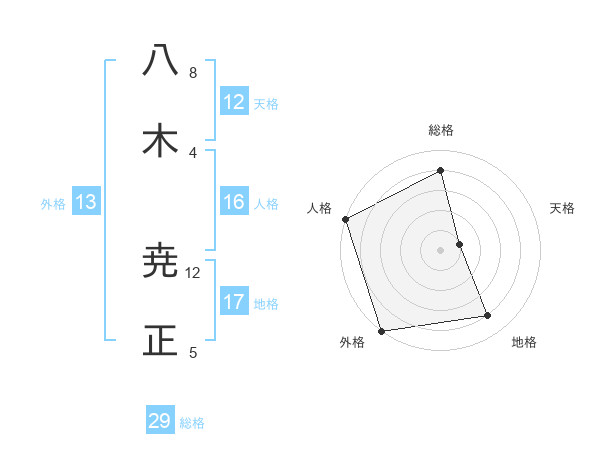 八木 尭正さんの総格は29画の4点!