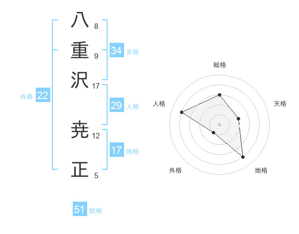 八重沢 尭正さんを姓名の画数から五運を鑑定