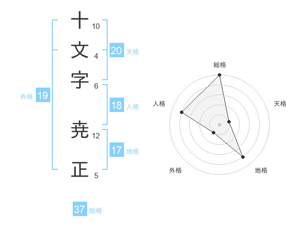 十文字 尭正さんの総格は37画の5点!