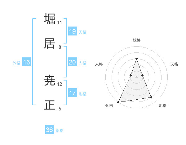 堀居 尭正さんの外格は16画の5点!