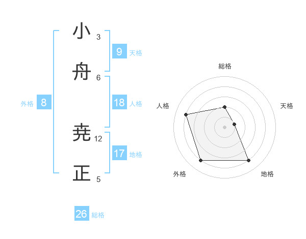 小舟 尭正さんを姓名の画数から五運を鑑定