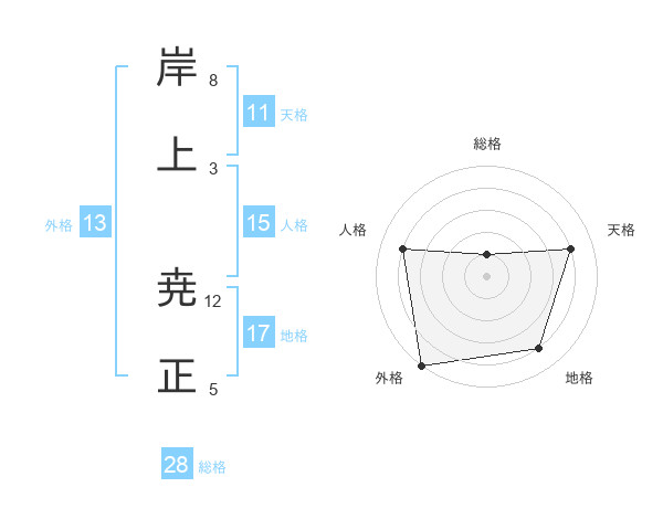岸上 尭正さんを姓名の画数から五運を鑑定
