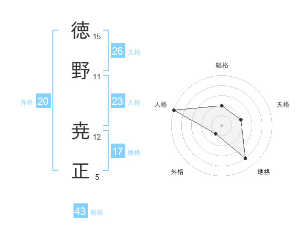 徳野 尭正さんの人格は23画の5点!