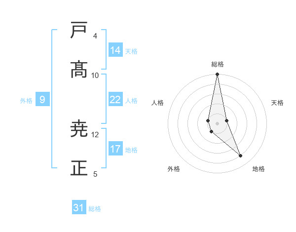 戸髙 尭正さんの総格は31画の5点!