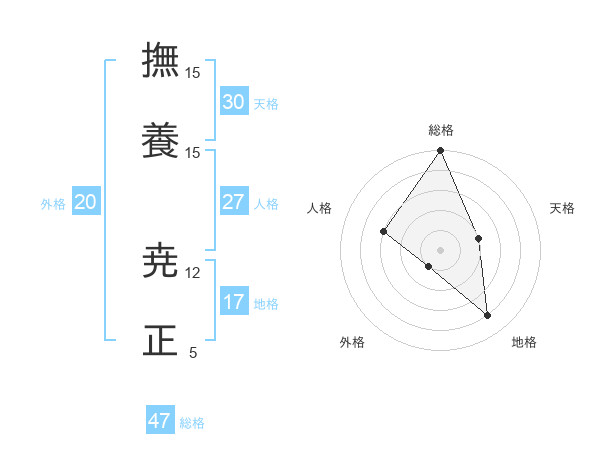 撫養 尭正さんを姓名の画数から五運を鑑定