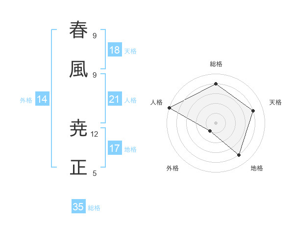 春風 尭正さんの総格は35画の4点!