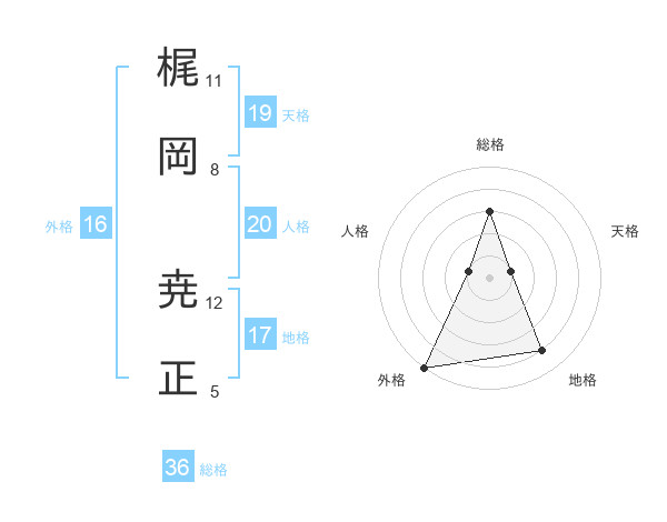 梶岡 尭正さんの外格は16画の5点!