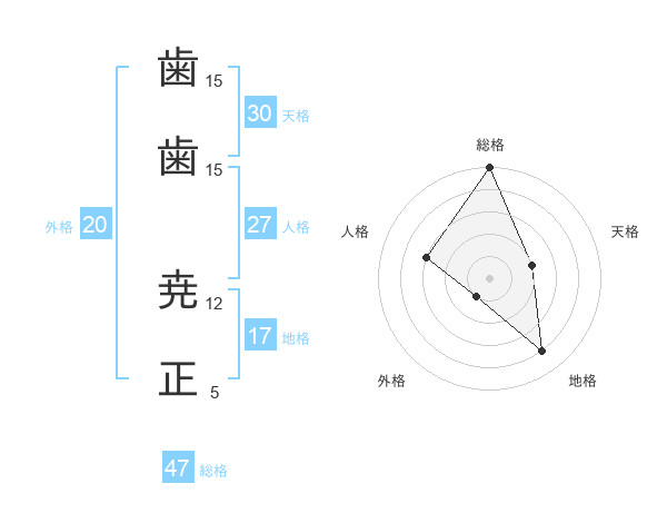歯歯 尭正さんを姓名の画数から五運を鑑定