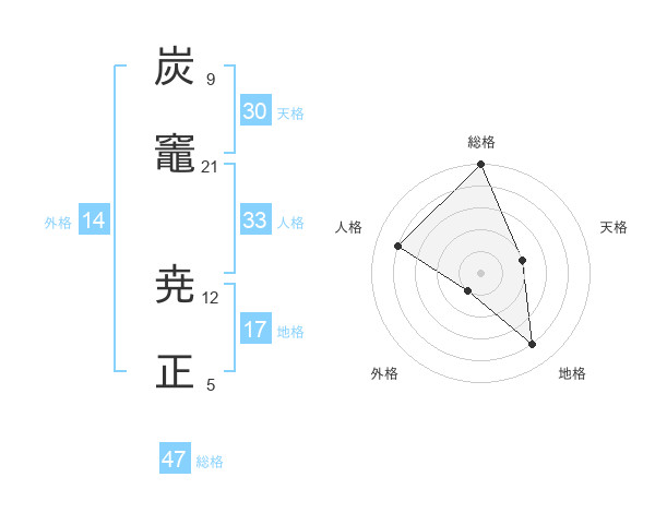 炭竈 尭正さんを姓名の画数から五運を鑑定
