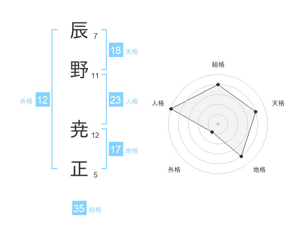 辰野 尭正さんの総格は35画の4点!