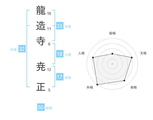 龍造寺 尭正さんの総格は50画の2点!