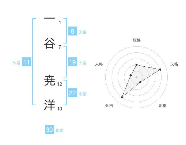 一谷 尭洋さんの地格は22画の1点!