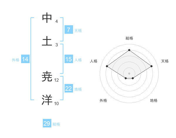 中土 尭洋さんを姓名の画数から五運を鑑定