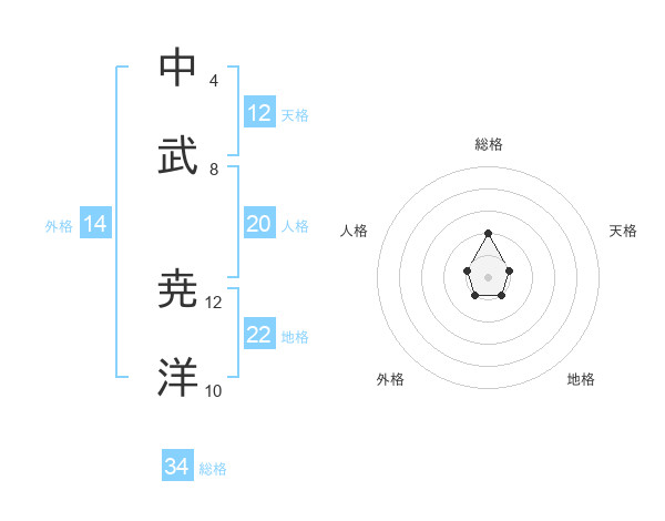 中武 尭洋さんの総格は34画の2点!