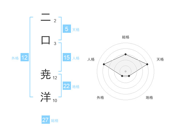 二口 尭洋さんの総格は27画の3点!