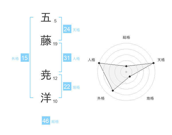 五藤 尭洋さんを姓名の画数から五運を鑑定