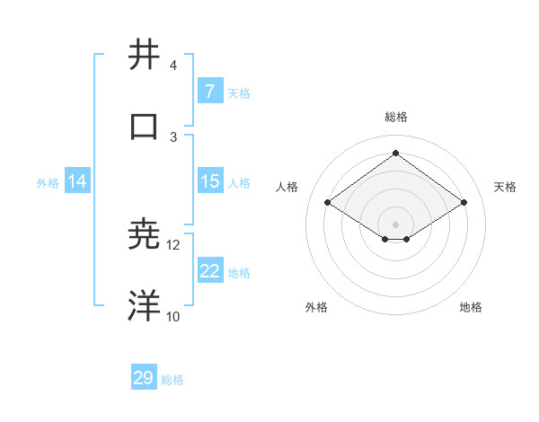 井口 尭洋さんを姓名の画数から五運を鑑定