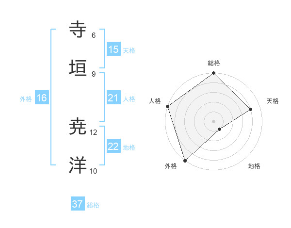 寺垣 尭洋さんの総格は37画の5点!