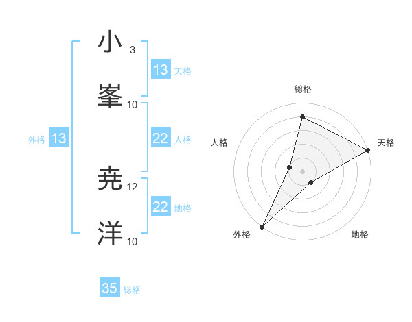 小峯 尭洋さんの外格は13画の5点!