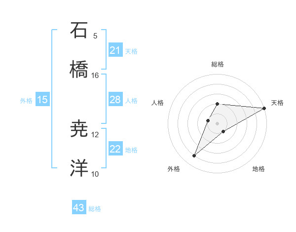 石橋 尭洋さんを姓名の画数から五運を鑑定