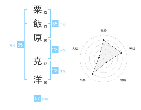粟飯原 尭洋さんを姓名の画数から五運を鑑定